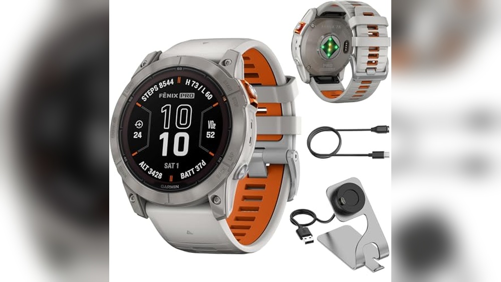 Garmin Fenix 7X Pro Sapphire Solar, Multisport GPS Smartwatch, Built-in Flashlight, Solar Charging, Titanium with Fog Gray/Ember Orange Band Bundle